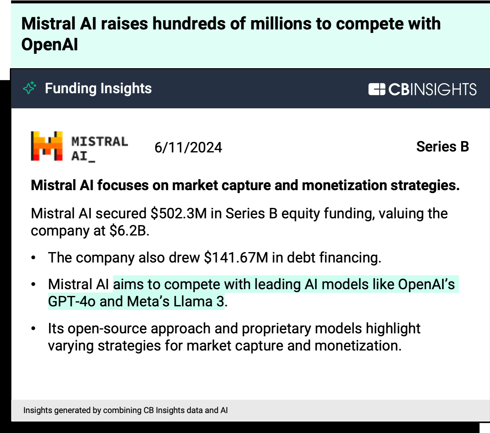 CB Insights customers can track every company mentioned in this analysis using this search. We used the Generative AI — large language model (LLM) developers and Generative AI — image generation market profiles to establish the private market landscape, focusing on companies that have received funding and are developing foundation models.