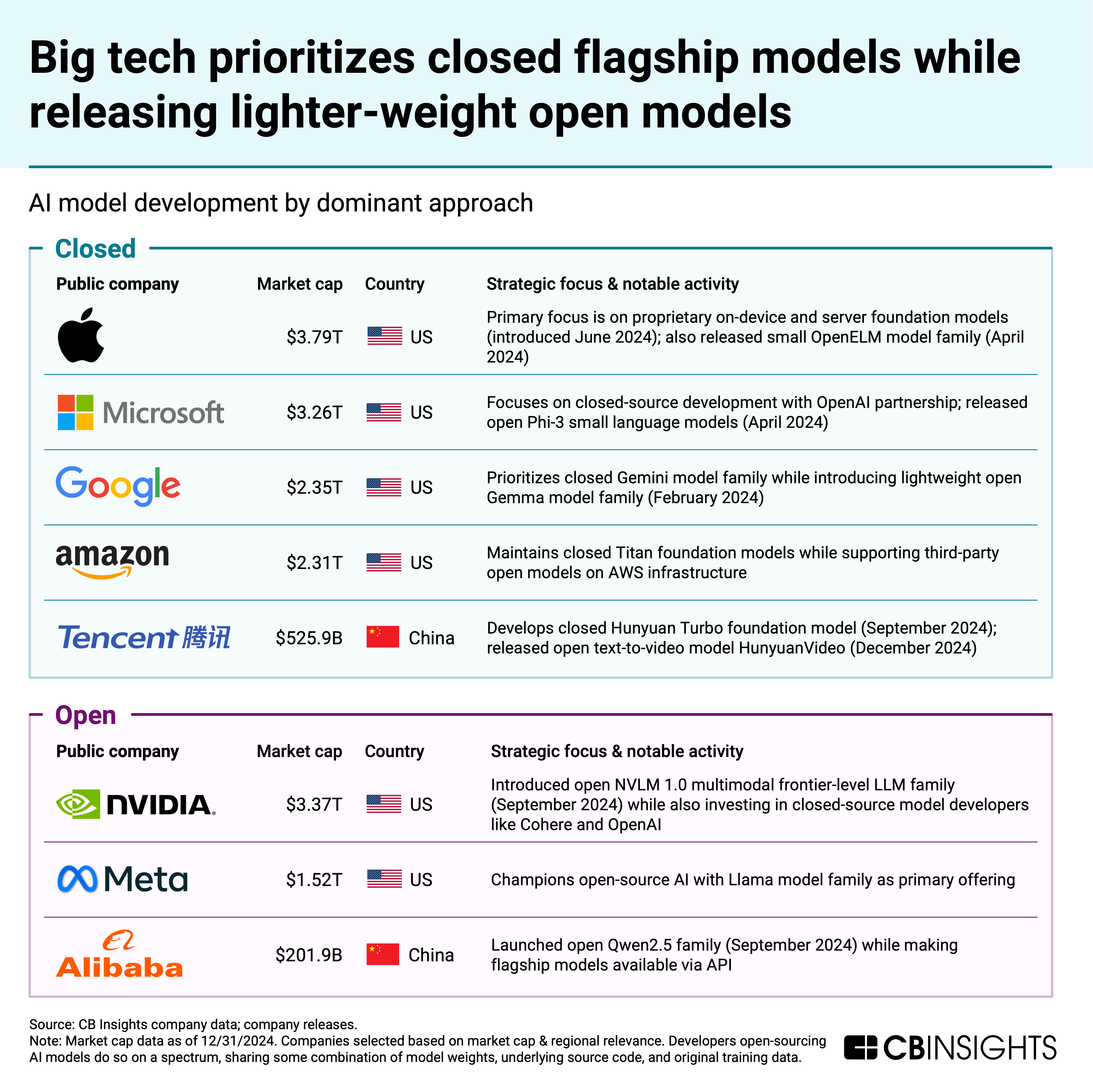 Many big tech companies — like Google and Apple — are releasing a combination of open and closed models, typically keeping their flagship models proprietary while releasing lighter-weight open models as an extension of their research efforts.