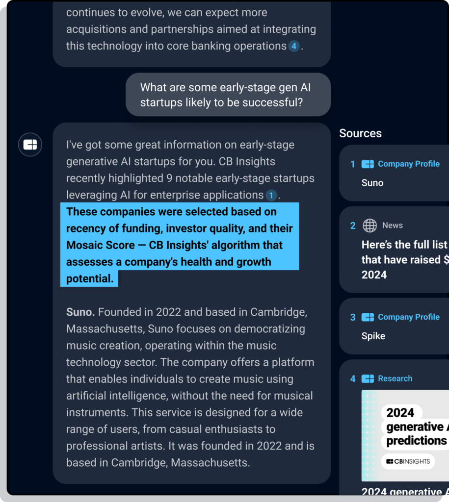 Way beyond the Internet and public LLMs. Built on our proprietary database. Hundreds of millions of insights and documents on private and public companies – including revenue, company hiring insights, and exit probability.