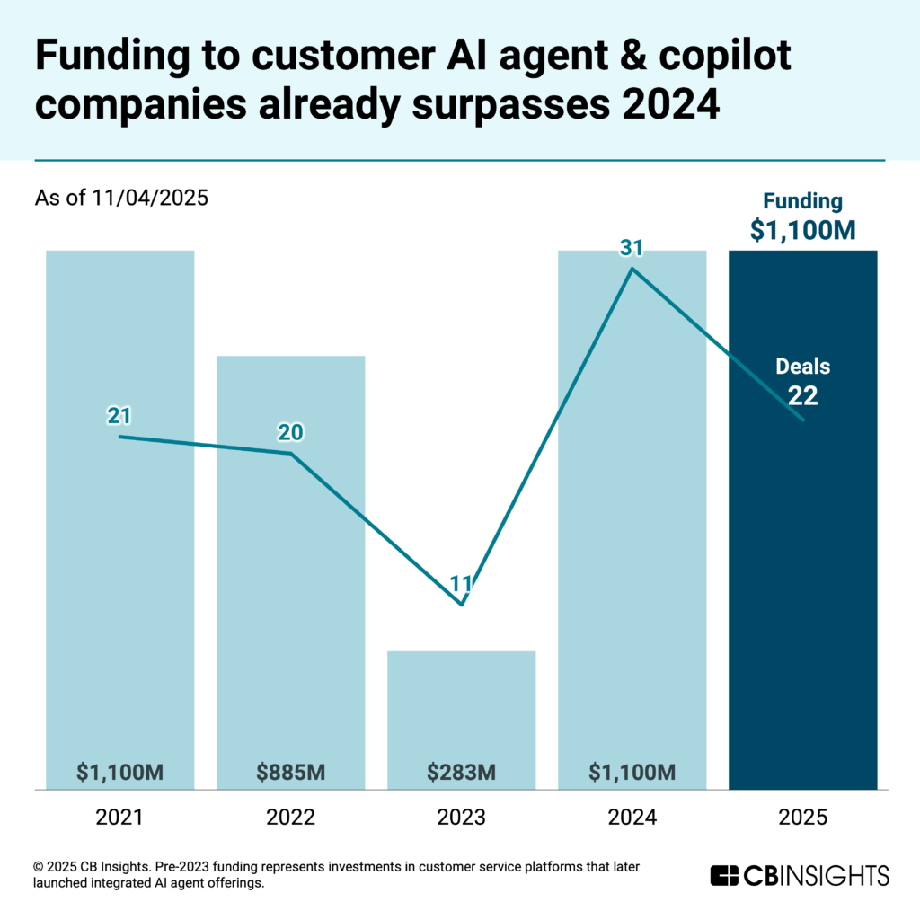 If you are active in the customer service AI agents & copilots market and want to submit your company’s revenue data, please reach out to researchanalyst@cbinsights.com.