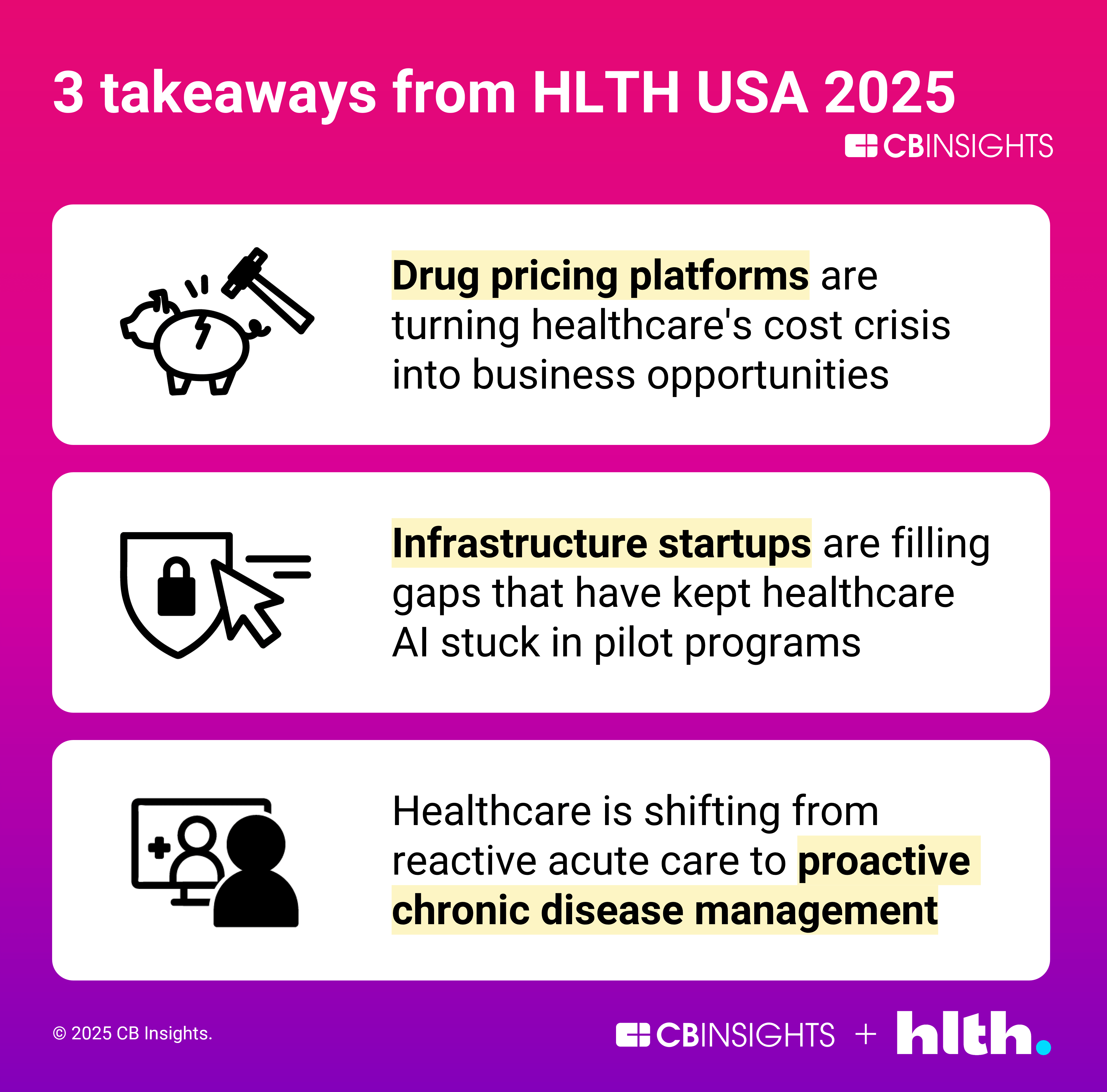 Using CB Insights’ predictive signals and executive commentary from the conference, we identified 3 themes shaping the next wave of healthcare innovation: